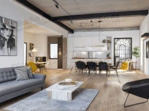 El estilo moderno/contemporáneo se caracteriza por líneas limpias, minimalismo, y colores neutros. La combinación de materiales como el vidrio, metal y concreto crean espacios sofisticados y vanguardistas.